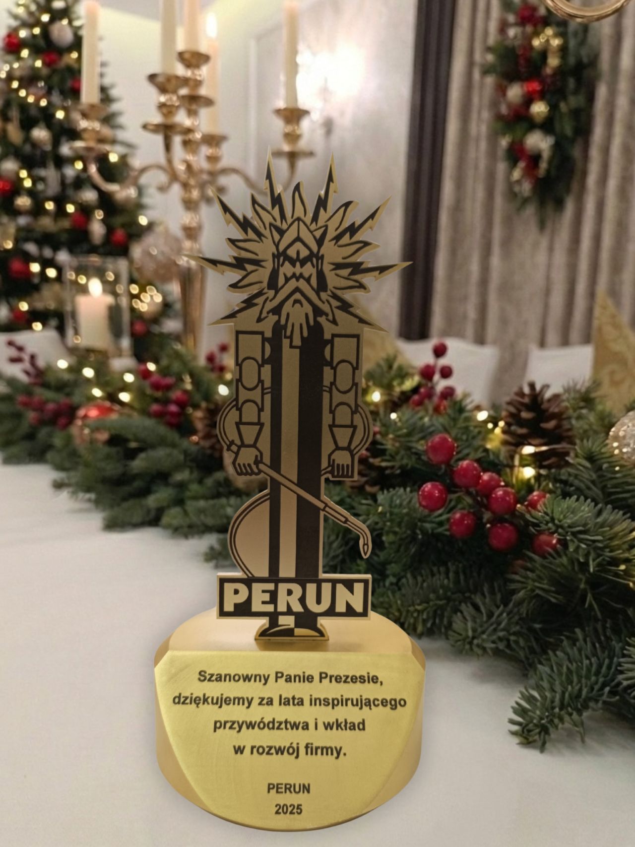 Podczas spotkania wielokrotnie podkreślano rolę prezesa jako lidera konsekwentnie budującego pozycję PERUN oraz kulturę współpracy opartą na zaufaniu i zaangażowaniu zespołu. Istotnym punktem wydarzenia było wręczenie pamiątkowej statuetki jako wyrazu uznania i wdzięczności.